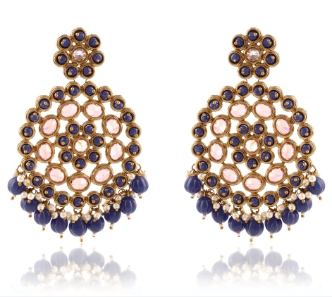 Gold Plated Handcrafted Kundan Studded Blue Beaded Earrings